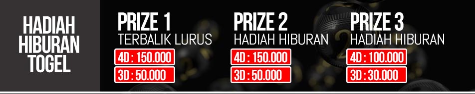 - Hadiah prize 3 : 4D = Rp. 100.000,- / 3D = Rp. 30.000,-